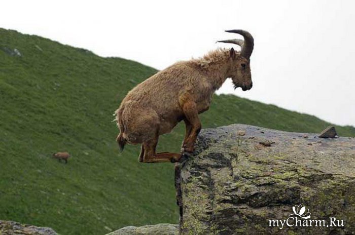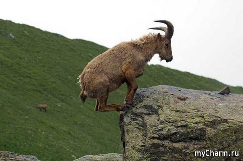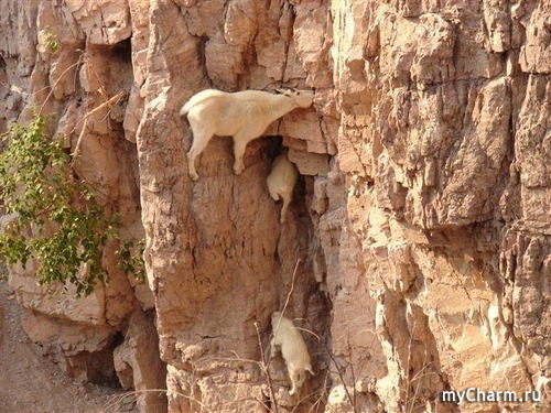Я ещё тогда удивлялась, как на дереве то достал, а потом по телеку д/ф видели: лазят они, даже простые козы, по деревьям прекрасно...