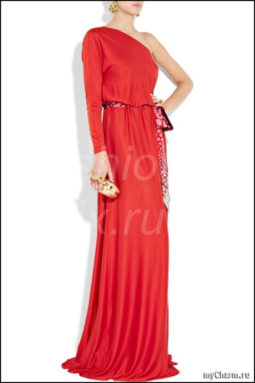 Дизайн платьев с асимметричным вырезом на плече и открытой рукой всегда продумывается так, чтобы оказались на виду и достоинства ткани, из которой они сшиты. Воплощаются же подобные модели, как правило, в шелке, шифоне, парче, атласе и других дорогих и эффектных фактурах. Даже бархатное платье довольно часто обретает такой вид.
