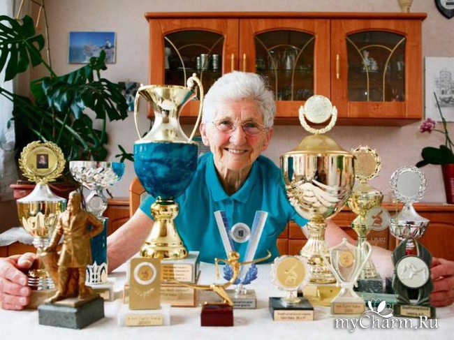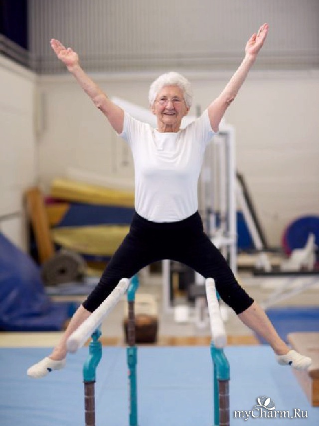 Ей около 90 лет, а она творит такие "выкрутасы" на снарядах, что не все молодые девушки (и я в том числе) справятся с этим.