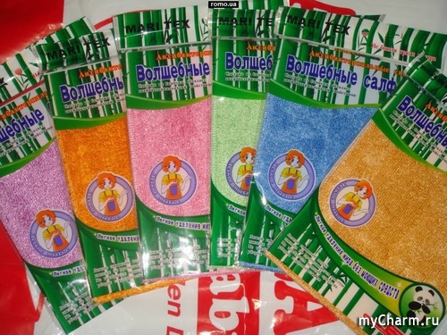 Я люблю тряпочки прорезиновые, не знаю как правильно они называются, ее намочил, она распрямилась, легко смывается с нее все, мы ей столы кухонные протираем.
