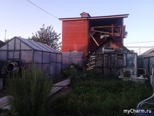 У нас уже дом новый стоял (он у нас пристроен был к той половине), 2 этажа уже с потолками-полами, стены заштукатурены и загрунтованы, а мансарда под крышей (посерёдке - высота 2 м): евровагонкой отделана, окрашена, крышу (металлочерепица) утеплили см 30 точно было, еле вскрыли, мы туда всё, чем не пользовались и новьё на будущее снесли - битком было. От их сарая старого, на 100 раз рубероидом крытого, ввысь такое пламя было, что окна пластиковые у нас на 2-ом лопались и мансарда-то и загорелась... Потом мужики лопатами всё это вниз скидывали - одна труха, но мно-ого. Сверху лило так, что все стены, естественно, заново грунтовать пришлось. А если учесть, что мой не умеет вообще ремонтом заниматься: нанимали гастрбайтеров и на отделку и на крышу и на постройку... Мой с друзьями сам фундамент заливал и проводку делал. И всё, блин, прахом пошло...