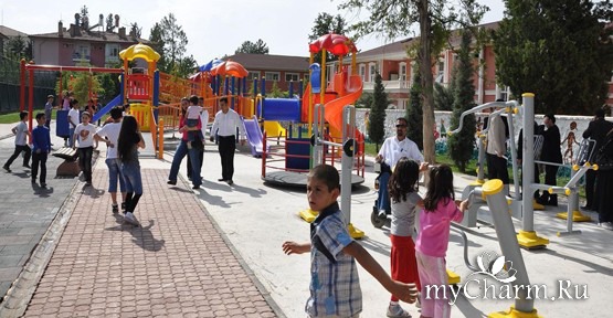 Спортивные площадки вместе с игровыми есть в каждом парке. Такое приятное и полезное сочетание комплексов есть ещё и в новых постройках, которые бывают ограждены забором. То есть несколько небоскрёбов образуют своего рода район, двор, в Турции их называют "ситэ" и в общем дворе развивают парк с игровой и спортивной площадкой. Это как два в одном. Вы даже не представляете, как это полезно. Идёшь гулять в парк с ребёнком, а по сути считай, что и в спортзал сходила. А для тех у кого нет детей, пошёл позаниматься спортом, заодно полюбовался на детишек. И приятно, и полезно. Я сначала думала, что это специально для женщин, для послеродового восстановления организма так продумано.
