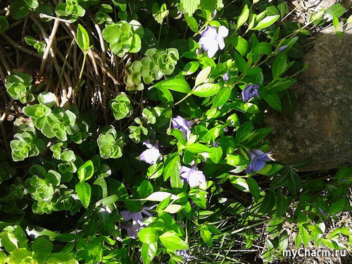 а голубенькие, нижние, у нас тоже во всех дворах растут. Листики как восковые , а цветочки нежные.