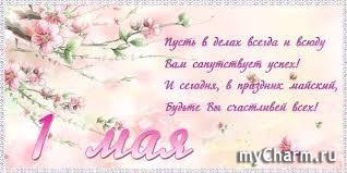 Милые майчармелечки! От всей души поздравляю вас с наступающим 1 мая!!! Пусть в ваших домах всегда будет светло, тепло, уютно, красиво. Пусть в них будет много-много улыбок, смеха и любви! А вам всем лично от меня - молодости, красоты, здоровья, востребованности в жизни, в любви, в работе, в карьере!