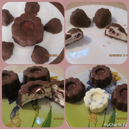 Когда все формочки обмазаны шоколадной глазурью, ставим их в морозильник на 20-30 минут.