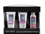 Культовый продукт линии JOHN FRIEDA® Frizz Ease®, входящий в набор - Оригинальная сыворотка «6 в 1» для непослушных волос - основное средство в решении проблем вьющихся непослушных волос, главной целью которой является мгновенное преобразование поврежденных, пушащихся волос в ухоженные и блестящие, Сыворотка защищает от влажности, придает волосам потрясающий блеск и сияние.