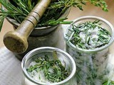 Состав: 300 гр. мелкой соли, 2 ст. л. сухого розмарина, 1 ст. л. мускатного ореха, 1 ст. л. куркумы, черный перец по вкусу. Розмарин немного перетереть, чтобы усилить вкус и аромат. Все ингредиенты перемешать. Соль хранить в закрытой баночке. Идеально для соусов, овощных блюд, соленой выпечки.