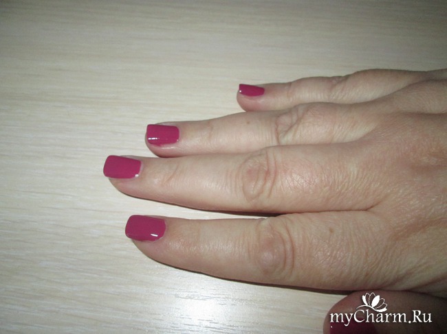 Покрыла ногти защитной базой, затем покрыла лаком ягодного оттенка (так мне сегодня захотелось):