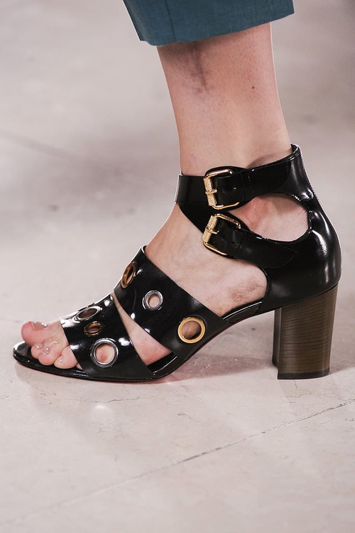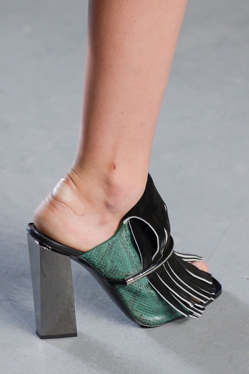 Много 2-3-цветных моделей, со смысловыми цветовыми акцентами. Такие модели могут дополнить практически любой образ и смотрятся очень интересно, особенно с прозрачным каблуком, на котором сделали акцент некоторые дизайнеры.