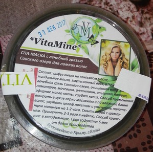Следующий мой обозреваемый так же представитель из Крыма это Спа – Маска с лечебной грязью Сакского озера для ломких волос от VitaMine.