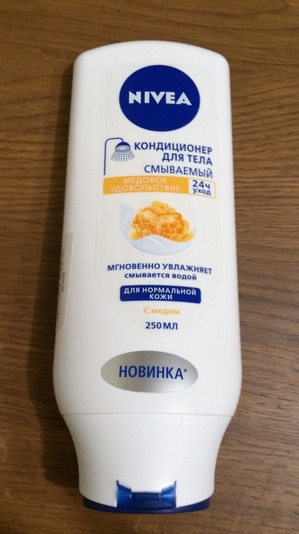 Несмотря на то, что я люблю пробовать новинки, некоторые из них кажутся уж какими-то очень необычными) Так, недавно я получила в подарок Смываемый кондиционер для тела Nivea «Медовое удовольствие». С кондиционерами для волос, знакомы, думаю, все, а вот эта новинка меня сначала сбила с толку: что и как с ней делать?