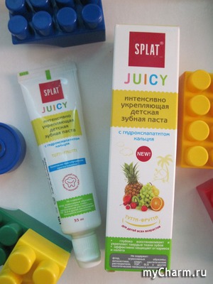 Очень уж нам полюбились пасты Splat («Сплат»). Сегодня я расскажу о второй самой любимой пасте моего сына – интенсивно укрепляющей детской зубной пасте «Тутти-фрутти» от производителя Splat. Первая, конечно, - это паста «Сплат» из серии Juicy «Мороженое». Как вы понимаете, паста со вкусом мороженого вне всякой конкуренции. Но чтобы ребенок не привыкал к тому, что вся паста имеет вкус любимого лакомства, я беру фруктовый «Сплат» для разнообразия.