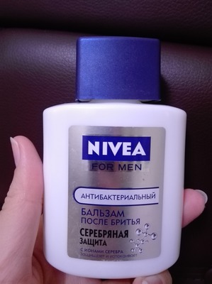 Досталось мне по наследству средство одно очень интересное. Оно вообще-то предназначено для мужчин. Этот продукт от Nivea бальзам после бритья "Серебряная защита".