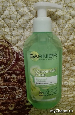 Это Очищающая Гель-Пенка от Garnier. Красивое оформление флакона сразу притягивает взгляд. Гель помещен в салатовый флакон с дозатором. Иметь в ванной такое средство очень удобно, мокрыми руками не надо отвинчивать крышечки. Одним нажатием пальчика мы получаем порцию геля. По консистенции он густой, прозрачного цвета. Капаю на гель немного воды и растираю в ладошках, получаю нежную пену... Читать далее»