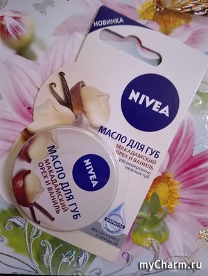 Хочу представить очередную новинку от Nivea – это Масло для губ Макадамский орех и ваниль.