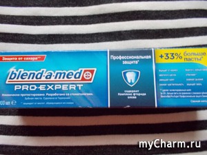 Зубными пастами от Blend-a-med я пользуюсь практически с незапамятных времен – впервые я попробовала эти пасты, когда мне было лет 15 или 16. С тех пор сменилось великое множество их видов, вкусов и упаковок, но Blend-a-med все так же красуется на полочке в моей ванной комнате. Особенно полюбилась мне зубная паста из серии Pro-Expert Профессиональная защита со вкусом Свежая мята.