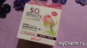 Цена около 100 рублей за 50 мл, назначение от 25 лет от первых возрастных изменений, приятная на вид упаковка, наличие полезных ингредиентов, небольшая защита от солнечных лучей – это он, герой моего сегодняшнего рассказа. Представляю вам дневной крем для лица из Белитовской серии So Beauty.