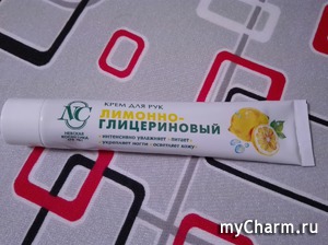 Итак, обозрев часть свое декоративной косметики, вернусь к уходовой. Хочу рассказать о креме для рук, которым я сейчас пользуюсь. Это Лимонно-Глицериновый крем для рук от Невской косметики. Этот крем у меня стоит на работе.