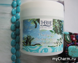 Услышав слово «масло», мы сразу представляем себе какой-то «жирный» косметический продукт. Кстати, за это масла в уходе за кожей и недолюбливаю. Очень не люблю на теле ощущение жирности. Но взбитое масло – это совершенно другой продукт. Благодаря кремовой текстуре оно мгновенно тает на коже. Хочу познакомить вас с нидерландским маслом для тела Therme из новой линейки Thalasso – c солями и водорослями.