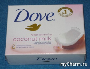 Несколько лет назад попробовала мыло марки DOVE и была так покорена его ароматом, благотворным действием на кожу, благодаря содержанию увлажняющего крема, приятным внешним видом, что до сих пор пользуюсь только им для смывания макияжа с лица и умывания. Постоянно применяла Крем-мыло DOVE "Красота и уход", а в этот раз я купила крем-мыло "Кокосовое молочко и лепестки жасмина".