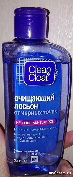 Сейчас я использую для лица Очищающий лосьон от черных точек Clean&Clear. Отличное средство для летнего периода, когда кожа чаще потеет, поры забиваются. Вот о нем я и хочу поговорить.