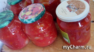 Рецепт взят с сайта "Поварёнок", у пользователя kenzzzo. Единственное, я немного отошла от первоначального рецепта, поскольку у меня были очень уж мясистые помидоры. Но вам я дам и тот, и другой вариант.