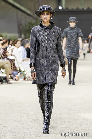 Рассказав о показе Dior, мы, конечно, не могли обойти вниманием Chanel. Модное шоу состоялось в Grand Palais.Работа над коллекцией проходила, разумеется, под руководством Карла Лагерфельда, который, так сказать, вернулся к истокам знаменитого модного дома. Отсюда «фирменный материал» бренда – твид – из которого сшили и жакеты, и пальто. Головы моделей украсили шляпы-котелки.