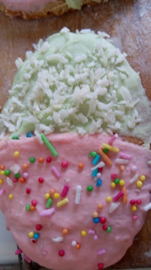 Так как у меня оказалось много глазури, то решила испечь самое простое печенье и украсить цветной глазурью.