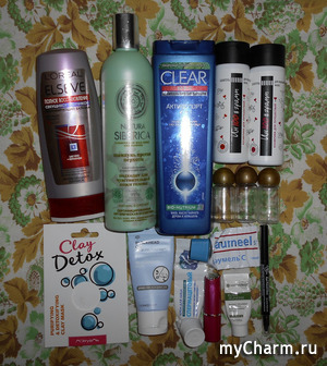 Шампуни. Зеленый - хороший, отлично промывает волосы. Пользовался муж, но и я несколько раз к нему приложилась. Второй шампунь так себе, еле домучила. Волосы после него как-будто не до конца промытые.
