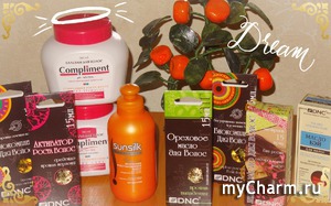 Первое, конечно DNC. Заказ я делала на Озоне, там был наборчик из 4 средств для волос, грех не попробовать.