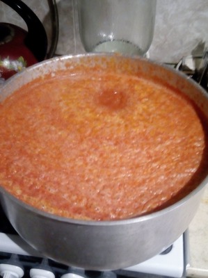 И тут все проще простого: берем помидоры, моим их и обрезаем все лишнее, потом пропускаем через соковыжималку и ставим варить