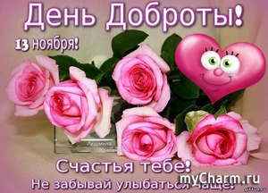 Дорогие мои подружки! От всей души поздравляю вас с Днем ДОБРОТЫ!!!13 ноября признан Всемирным днем Доброты. Этот праздник отмечают в Австралии, Бразилии, Великобритании, Франции, Индии, ЮАР, Италии, Канаде, Нидерландах, Новой Зеландии, Сингапуре, США, Таиланде, Шотландии, Испании, Китае, России и других странах. Официальным документом движения является «декларация доброты», которая гласит буквально следующее:... Читать далее»